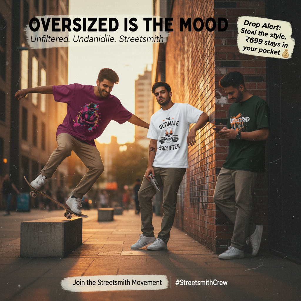 Step into effortless style and comfort with the Streetsmith Oversized Essentials Combo. Designed for a bold streetwear look, these unisex tees redefine casual fashion with a relaxed, boxy fit and premium craftsmanship.
